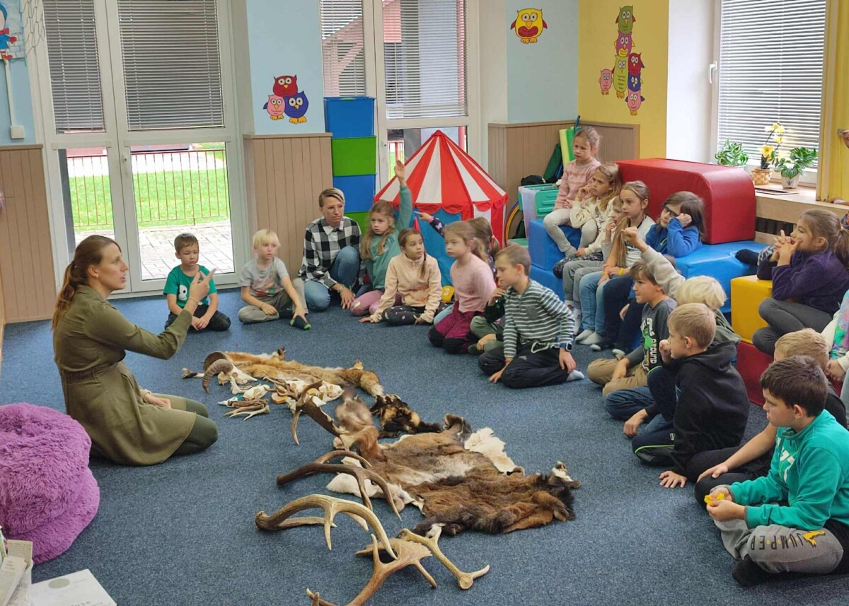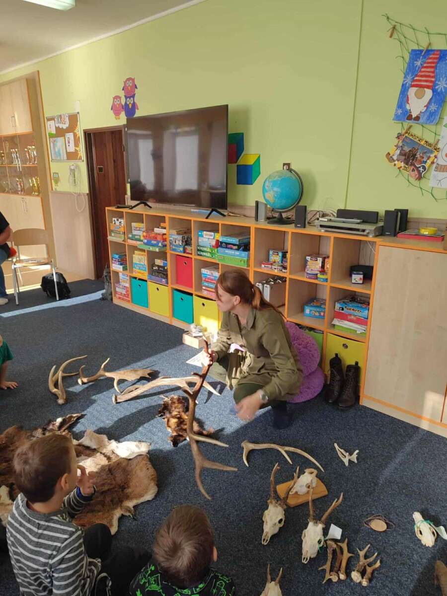 Dnešní lesní pedagogika se nesla ve znamení zvěře, která žije v našich lesích. Během akce se děti seznámily, jaké druhy zvěře jsou v našich lesích, naučili se pojmenovat celou zvířecí rodinu, naučily se rozdíly mezi jednotlivými druhy a základy v myslivecké mluvě.